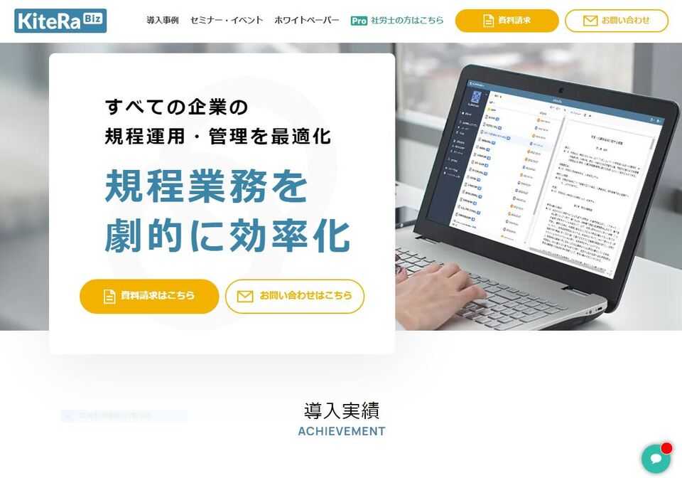 「KiteRaBiz」は、社内規程に関するさまざまな業務の効率化を実現するクラウドサービスです。