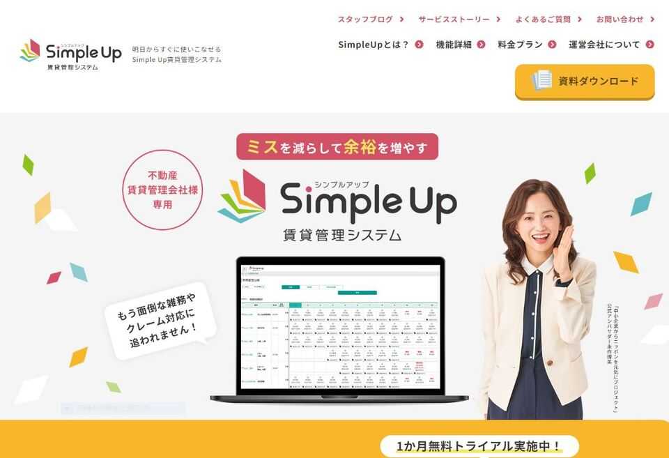 「Simple-Up」は、中小の不動産会社の業務をサポートする、クラウド型の賃貸管理システムです。
