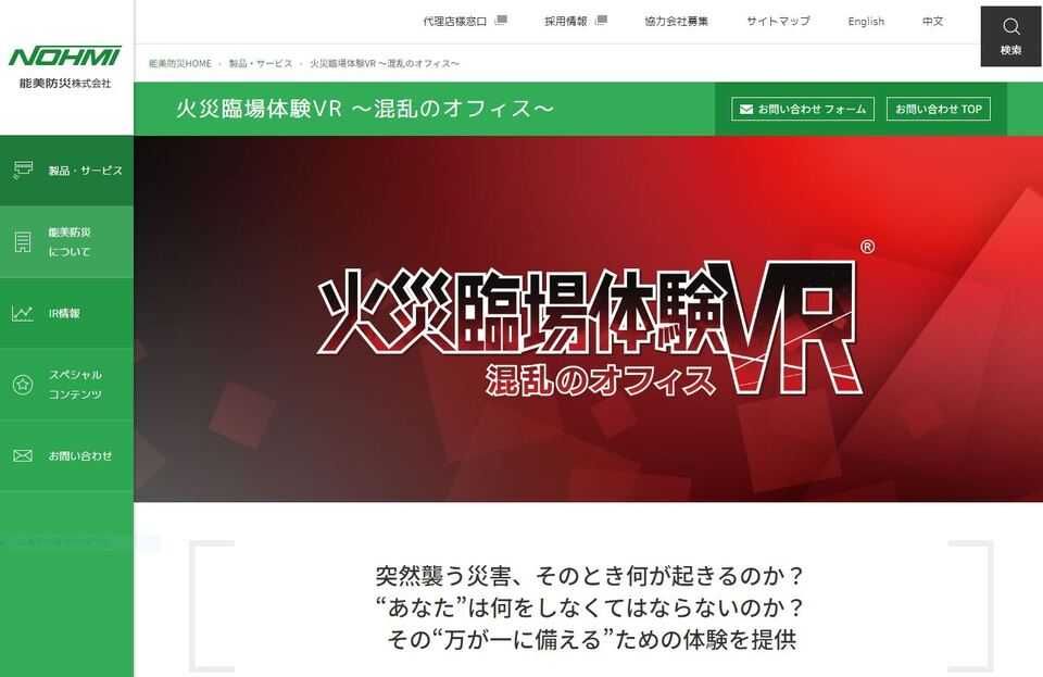 「火災臨場体験VR」 は、VRで災害をリアルに体験できるサービスです。