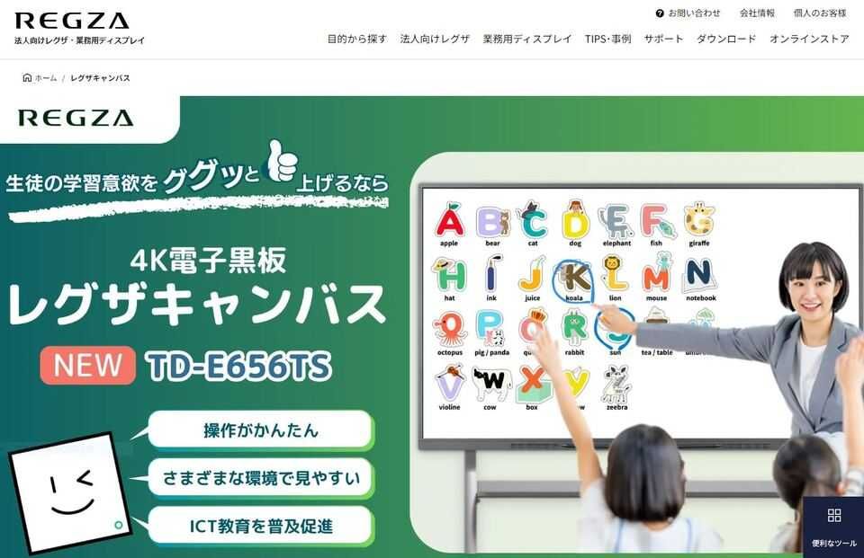 「レグザキャンバス」 は、タブレットやスマートフォンのように使える大型の電子黒板です。