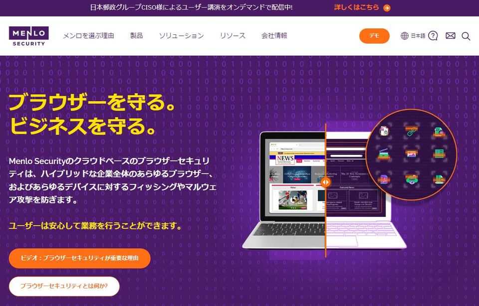 「Menlo Security」は、企業や公共機関の財産である大切なデータをサイバー攻撃から守る、セキュリティプラットフォームです。