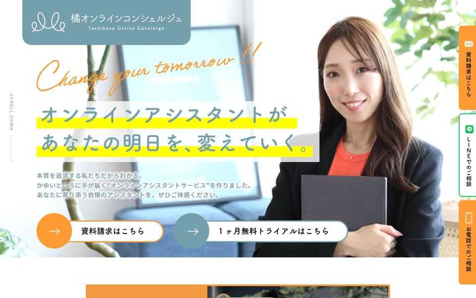 「橘オンラインコンシェルジュ」は、オンラインで業務を支援するオンライン秘書サービスです。