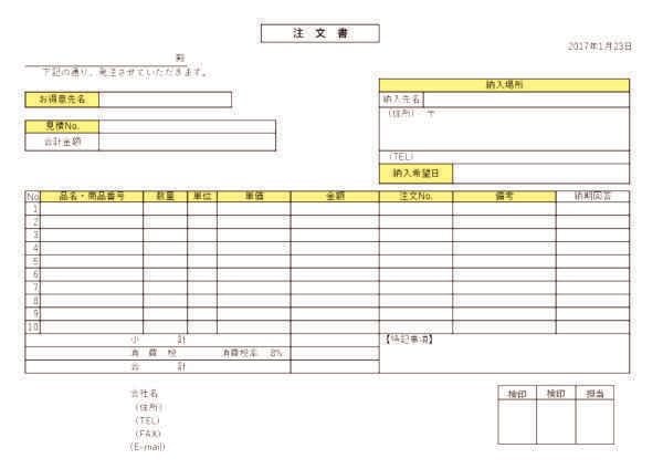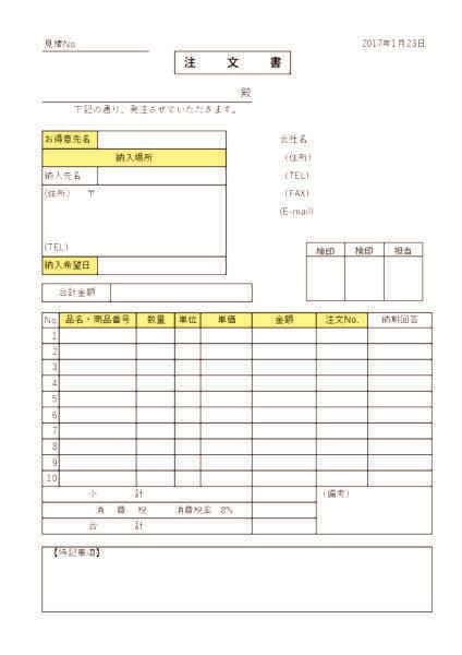 【注文書】Excel(エクセル)で使える無料テンプレート