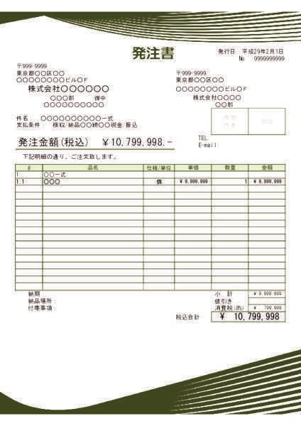 上記の要素が満たされていれば、発注書のフォーマット自体に制限はありません。