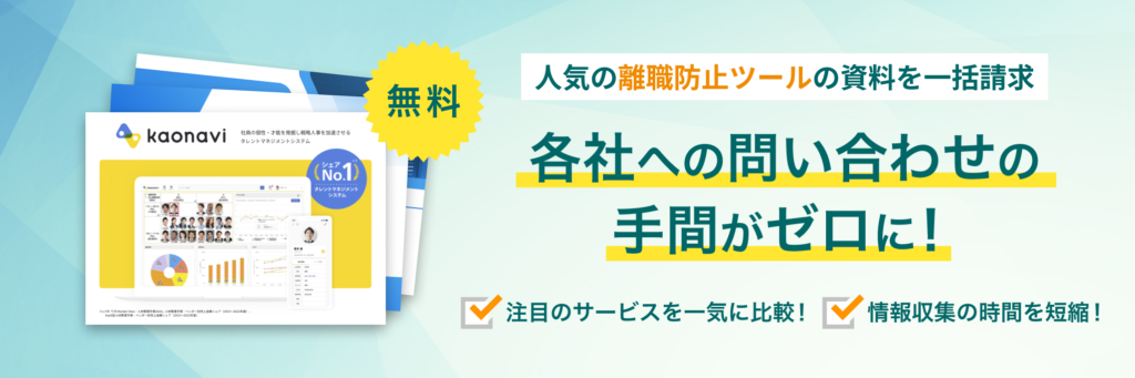 【特典比較表つき】『離職防止ツールの資料15選』 はこちら⇒ 無料ダウンロード