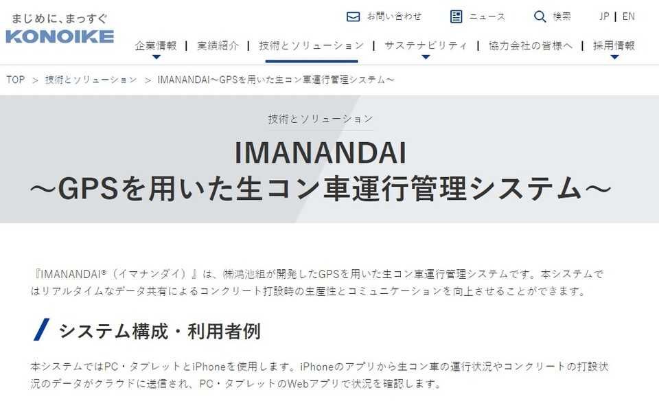 「IMANANDAI」 は、生コン車の運行や施行状況を見える化し業務効率化をサポートするツールです。