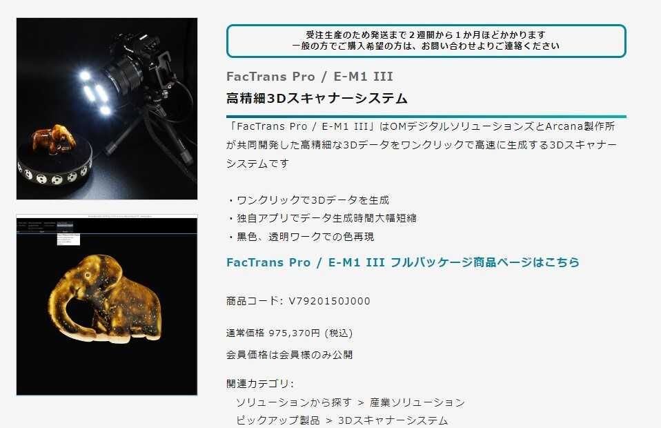 「FacTrans Pro/E-M1 III」 は、高精細なデータを生成できる3Dスキャナーシステムです。