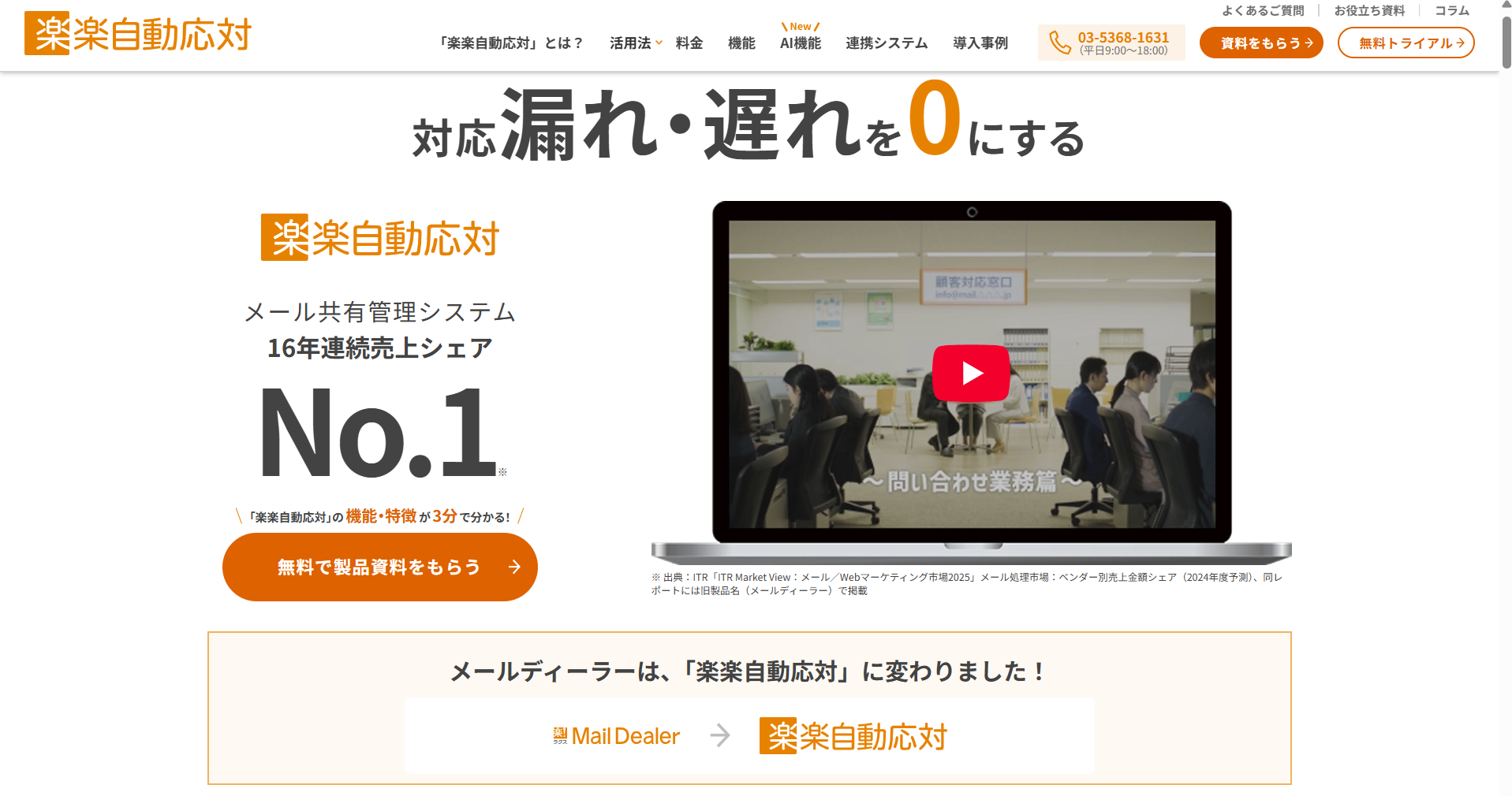 楽楽自動応対(旧:メールディーラー)
