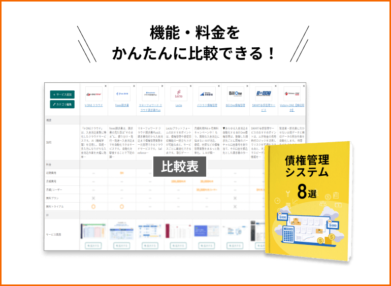 システム選定で失敗しないためには、各システムの情報収集を念入りに行い、料金や機能、特徴を比較することが重要です。これまで紹介した選び方や比較ポイントを参考に、自社に合う債権管理システムを探しましょう。