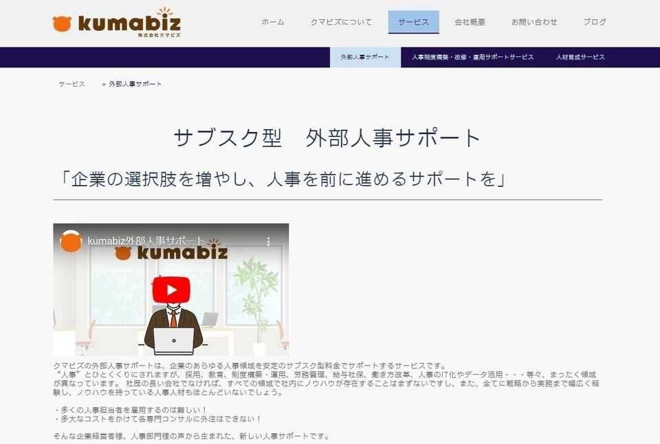 「クマビズの外部人事サポート」 は、企業の人事部のサポートに特化したサブスクリプション型のサービスです。