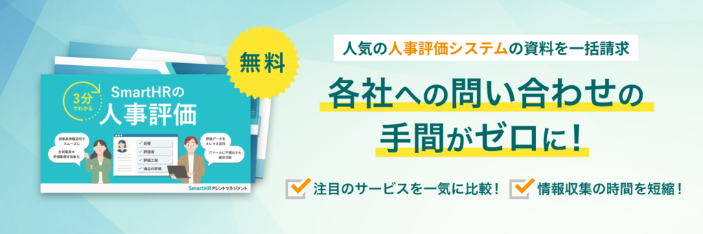 人事評価システムの導入を検討する際には、ニーズや予算に合わせて、複数のサービスを比較することが大切です。BOXILでは人事評価システムのサービス資料をまとめてダウンロードできるので、ぜひ活用してみてください。