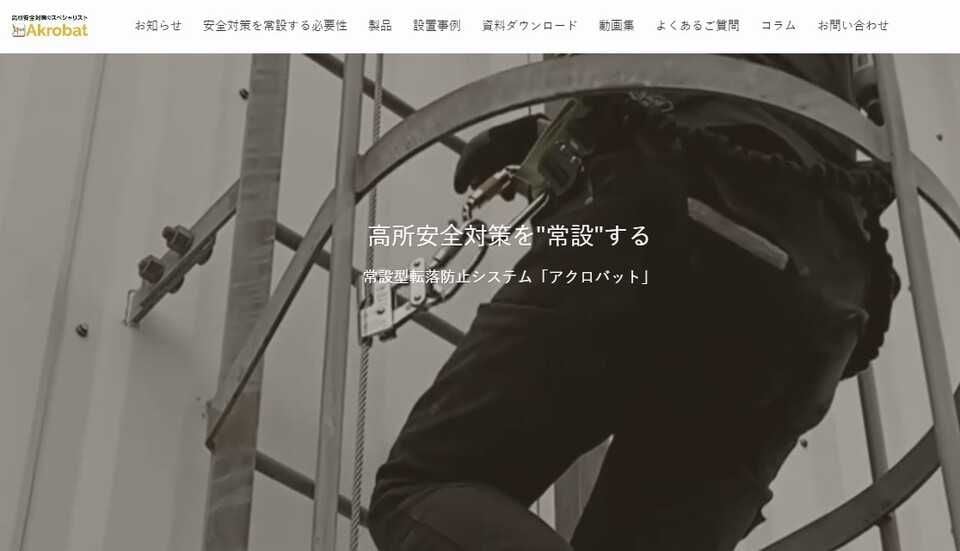 「常設型転落防止システム アクロバット」 は、高所作業の安全をサポートする転落防止システムです。