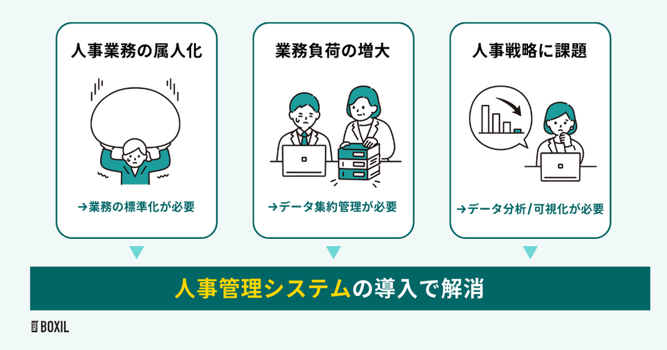 このような状況では、情報を一元化し、誰でもアクセス・対応できる環境を整えることが重要です。人事管理システムを導入することで業務の標準化が進み、担当者の負担軽減や引き継ぎの効率化につながります。