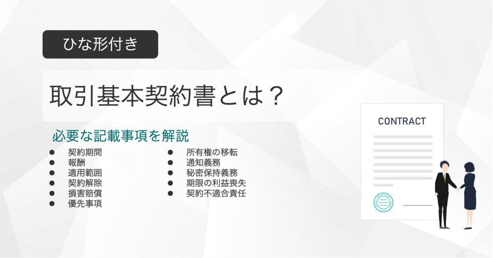 取引基本契約書の主な記載事項は次のとおりです。基本仕様として定めておくべき条項やその内容を解説します。