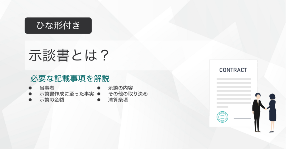 法律用語でない「示談」という言葉が使われるのは、裁判を通さない合意であることを示すためです。ちなみに、「和解」という言葉は「裁判上の和解(民事訴訟法第267条)」のように裁判においても用いられるものなので、私文書で「和解」と言う言葉を使用すると混同して誤解を招く恐れがあります。