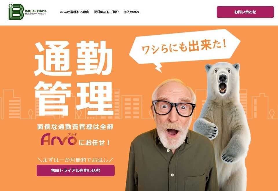 「通勤管理Arvo」 は、従業員の通勤経路や通勤手当など、通勤管理業務をサポートするサービスです。