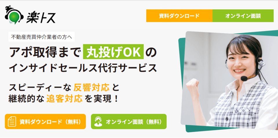 楽トスは、不動産会社の営業活動を丸投げできるサービスです。