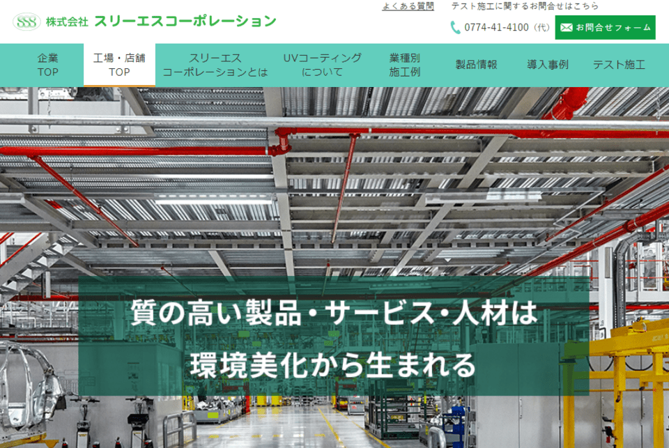 無溶剤UVコーティングは、刺激臭がなく安全性が高いため、さまざまな工場の床に施工できます。コーティングを行うことで、床の傷を防げるだけでなく、油や薬品による汚れ、フォークリフトのタイヤ痕などから床を保護し、メンテナンス性を向上できることも利点です。