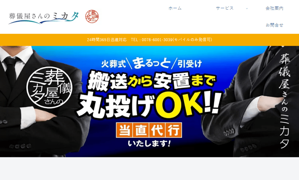 葬儀屋さんのミカタは、人手不足の葬儀社を助ける、葬儀代行サービスです。