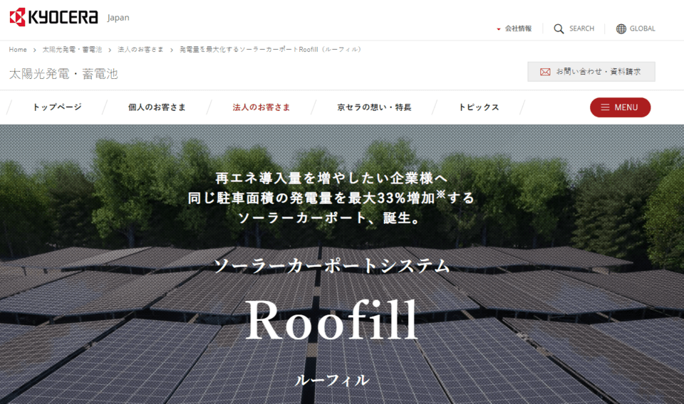 ソーラーカーポートシステム Roofillは、駐車場で太陽光発電ができるシステムです。