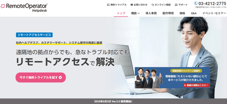 「RemoteOperator Helpdesk」は、遠隔地にあるパソコンでも操作支援を行えるようになる、リモートアクセスサービスです。