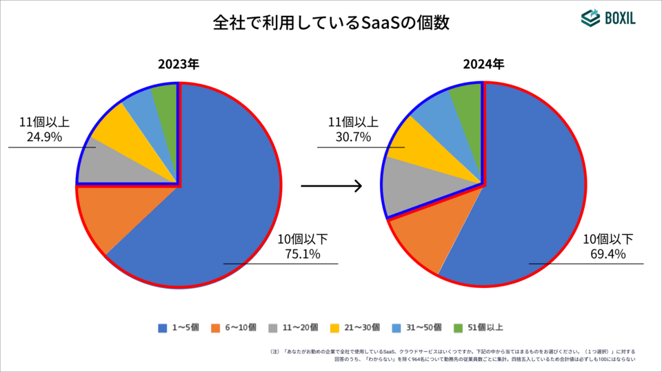- 「11個以上」のSaaSを利用している企業の割合が前年比5ポイント増加
