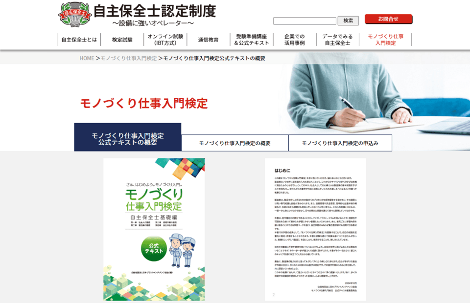 「モノづくり仕事入門検定~自主保全士基礎編~」 は、製造業の基本を学べるオンライン検定です。