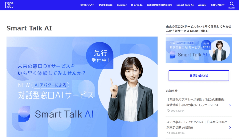 「Smart Talk AI」 は、AIアバターが受付業務を行ってくれる対話型窓口AIサービスです。