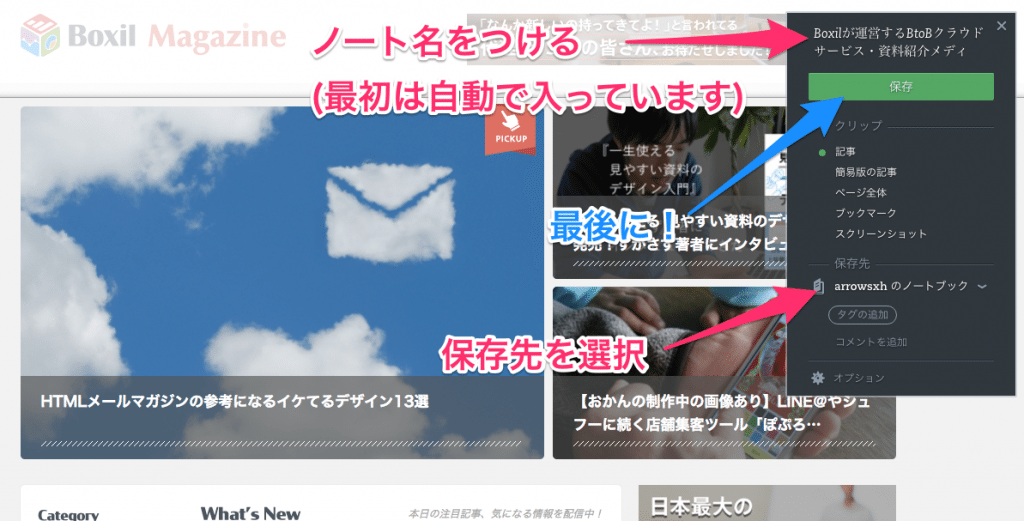 - Evernoteに保存を選択