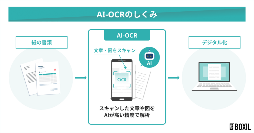 AI-OCRを使えば、スキャンした文書をAIが自動で解析し、高精度で文字を認識。さらに、認識した情報を必要なデータとして抽出し、データベースやシステムに自動で取り込むことができます。