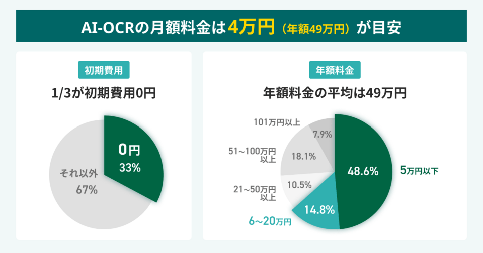 調査の結果、初期費用は約3分の1(33%)が0円で、初期投資なしでAI-OCRを導入する場合が多いようです。