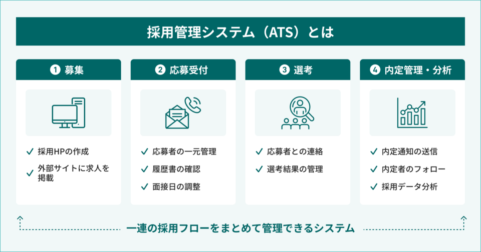 採用管理システムを利用すれば、募集から採用・分析まで一連のプロセスを一元管理できます。