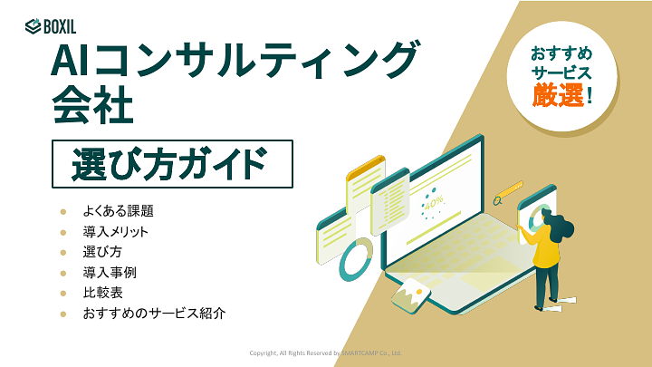BOXILでは、AIコンサルティング会社のおすすめを、選び方のポイントとともに紹介します。導入のメリットやデメリットも解説するので、ぜひ参考にしてください。気になるサービスがあれば、資料請求や問い合わせをしてみましょう。