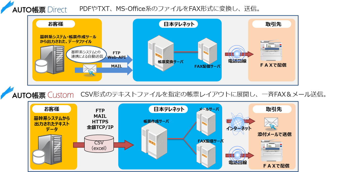 【AUTO帳票Direct】価格例 月額基本料金 10,000円~ FAX送信料金 18円/枚~ ※利用状況により相談させていただきます。
