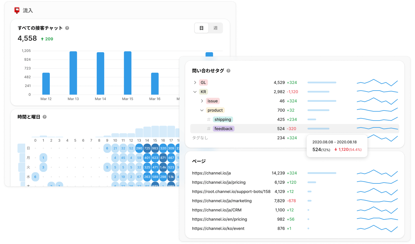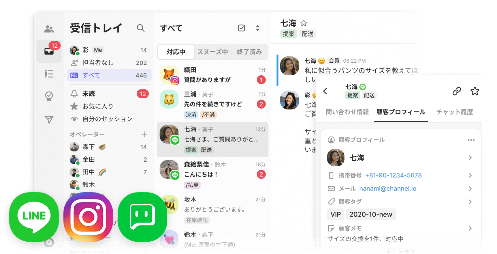 All-in-one AIビジネスメッセンジャー「チャネルトーク」 チャネルトークは、すべてのビジネスの成長の鍵である「顧客と企業間」の問題を解決することをミッションに、ビジネスと顧客を密につなげる顧客コミュニケーションツールを提供しています。 【機能概要】 1. 完全無料の「社内チャット」:スレッド・ファイル永久保存・メンション・グループ 2. サイトに訪問中の顧客と直接話せる「接客チャット」:Webチャット・LINE公式アカウント・Instagram連携・自動応答・検索機能 3. サイト外の顧客とつながり続けられる「CRMマーケティング」:Web接客・顧客管理・自動配信・一斉配信(SMS・メールへの配信も可能)・ABテスト 4. 運営の効率化を実現する「オペレーション機能」:接客チャット統計機能・担当者自動振り分け機能 5. カスタマーサポートの生産性を向上させる「サポートbot機能」:シナリオ型チャットbot・フォーム機能・ステップ分析 6. AI「ALF」:自然言語を扱うAI「ALF」による自動応答 【その他特徴】 ・160,000社に導入、ECやBtoB SaaSで活用されているコミュニケーションサービス ・社内チャット機能は完全無料 ・シート数による課金一切なし、社内でお問い合わせや顧客の声を共有できる ・いつでも解約できるので安心 ・初期費用は0円 ・14日間の無料トライアルが可能です チャットボット・Webチャット・リアルタイムチャット・カスタマーサポート・カスタマーサクセス(CS)・CRM・ビジネスチャット・ポップアップ・マーケティングオートメーション・Web接客