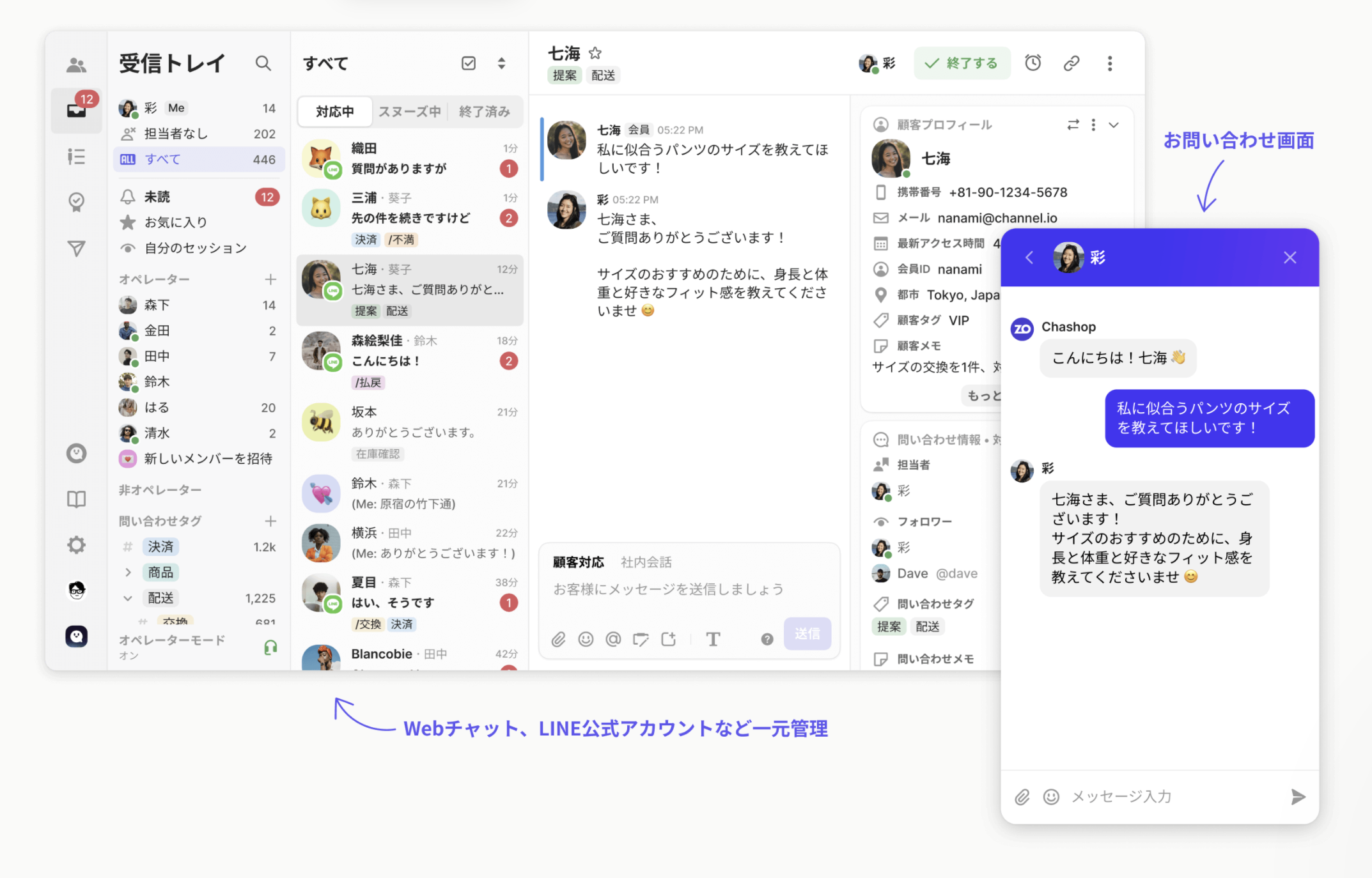 顧客とのリアルタイムコミュニケーションが容易になり、顧客満足度が向上しました。また、多機能なインターフェースやデータ分析機能、チーム内のコラボレーションが促進される点も大きなメリットです。