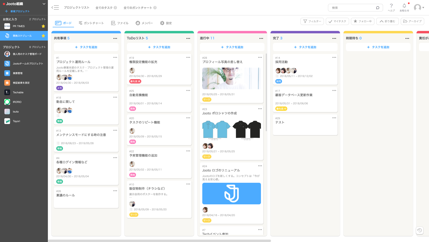Jootoを導入したことで、プロジェクトの全タスクをカンバン方式のボードで視覚的に管理できるようになりました。