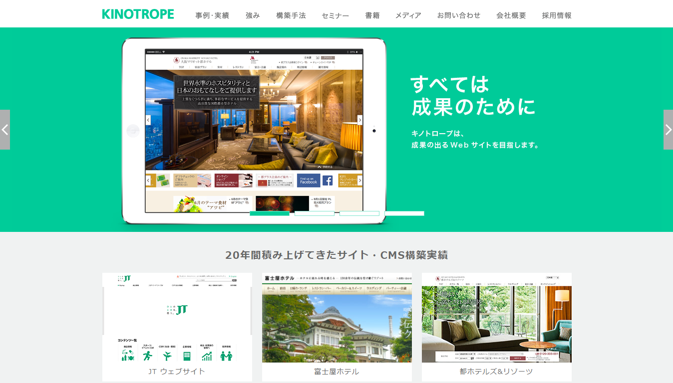 KINOTROPEはサイトやCMSの構築、運営をシステマティックに行えるサービスです。ビジネスコンサルティングからシステム開発、Webサイト構築、Webサイト運用まで、ワンストップ、ワンチームで提供しているため、すべての工数を一元化できます。