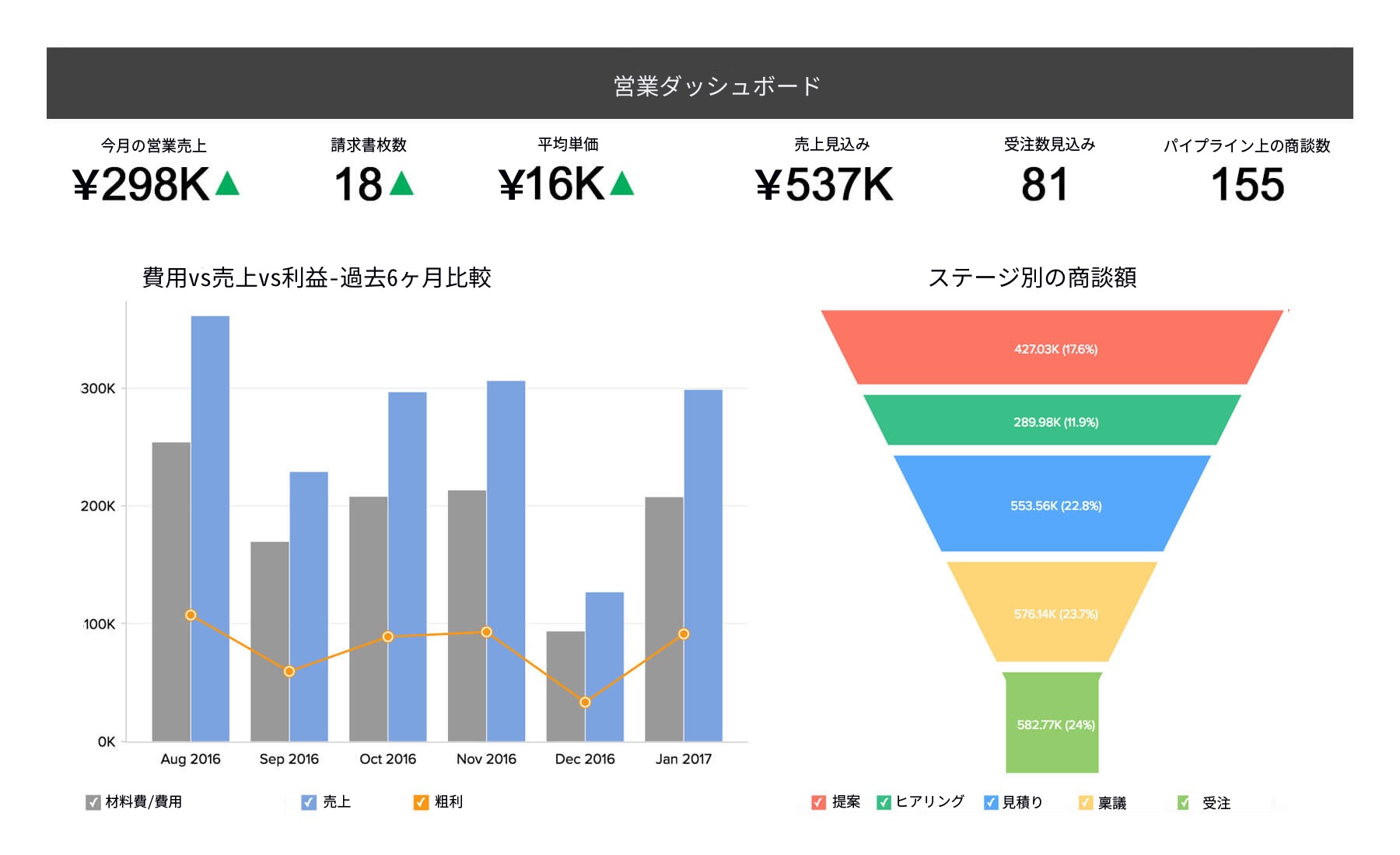 Zoho CRMは、世界15万社に利用されているCRM/SFAツールです。今あるプロセスを活かしながら、業務をシンプルに整理していくしくみが特徴的なサービス。日々の業務のムダをなくし、営業活動に集中できる仕事環境を実現します。さらに、営業プロセスをあらゆる角度から見える化。現状の良い点、悪い点など、必要な情報を即座に可視化し、スピーディな意思決定を導き出します。