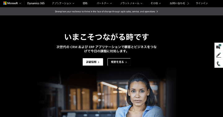 Microsoft Dynamics 365は日本マイクロソフト株式会社が提供するビジネスアプリケーションです。営業管理や顧客管理、カスタマーサービスなど幅広い機能を備えています。
