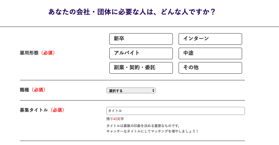 WEBからアカウント作成、採用活動がすぐに行えるサービスとなっておりますので、すぐにご利用いただきたい方は、下記からご登録下さい。