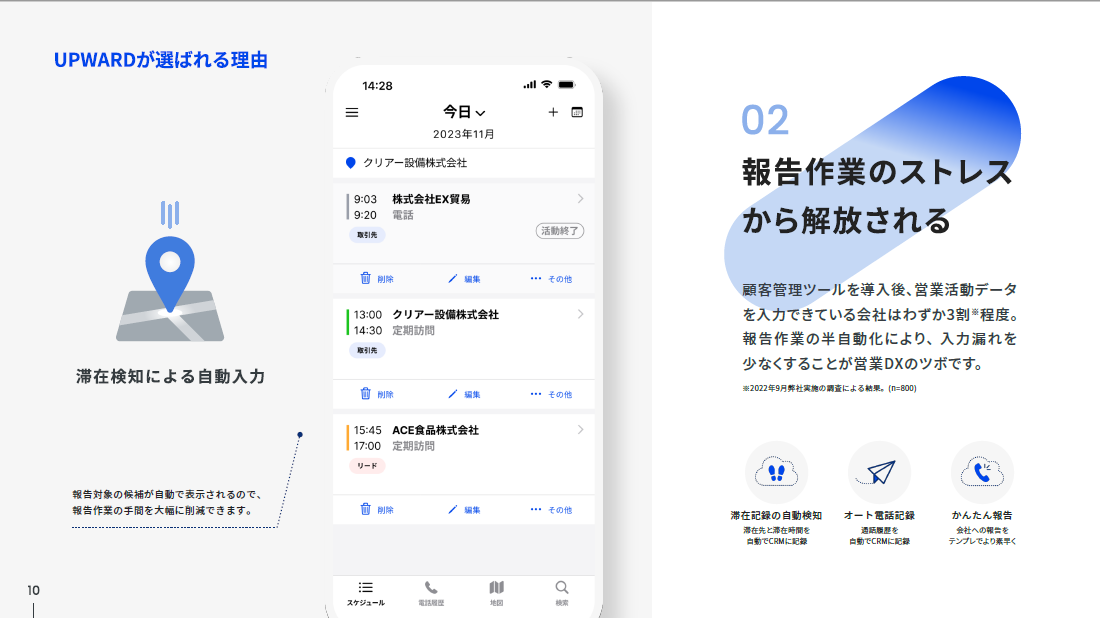 【利用継続率99.0%!】スマホで簡単に使える営業DXツール UPWARD