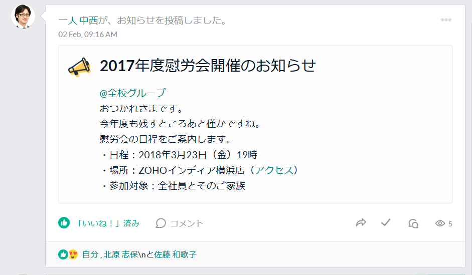 | 未読・既読 | 絵文字のリアクション | ||