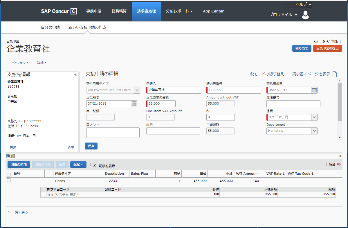 A Concur Invoiceでは、サプライヤーや経費タイプ、金額などに応じて申請・承認フローを柔軟に設定できます。一定金額までは部門長承認のみ、それ以上は部長承認を追加するなど、金額条件による多段階承認も構成できます。Q 社内規程に基づく自動チェックは行えますか?