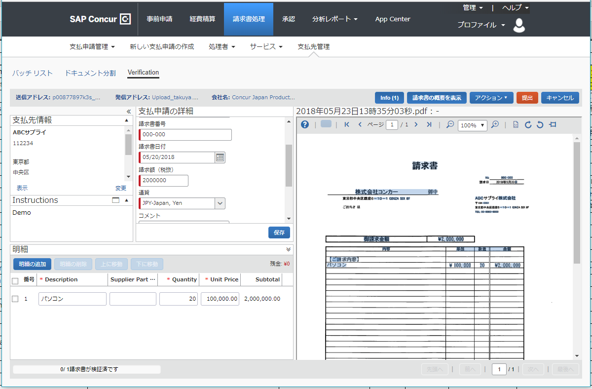 Concur Invoiceの最大の特徴は、紙やPDF、電子ファイルなど、あらゆる形式の請求書を電子化して一元管理できる点です。