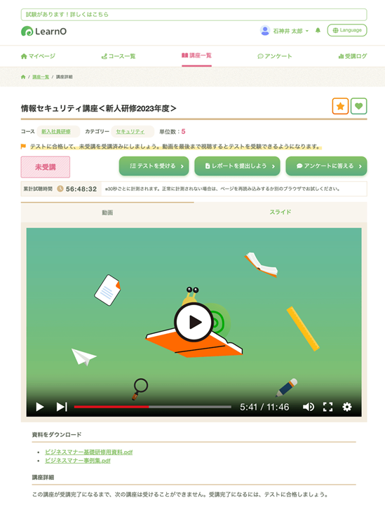 コロナ渦での研修ツールとして無料お試しプランから利用しました。 進捗度合いが見やすく、管理しやすい点と管理者側での未受講者の一元管理ができる点が非常に使いやすかった。