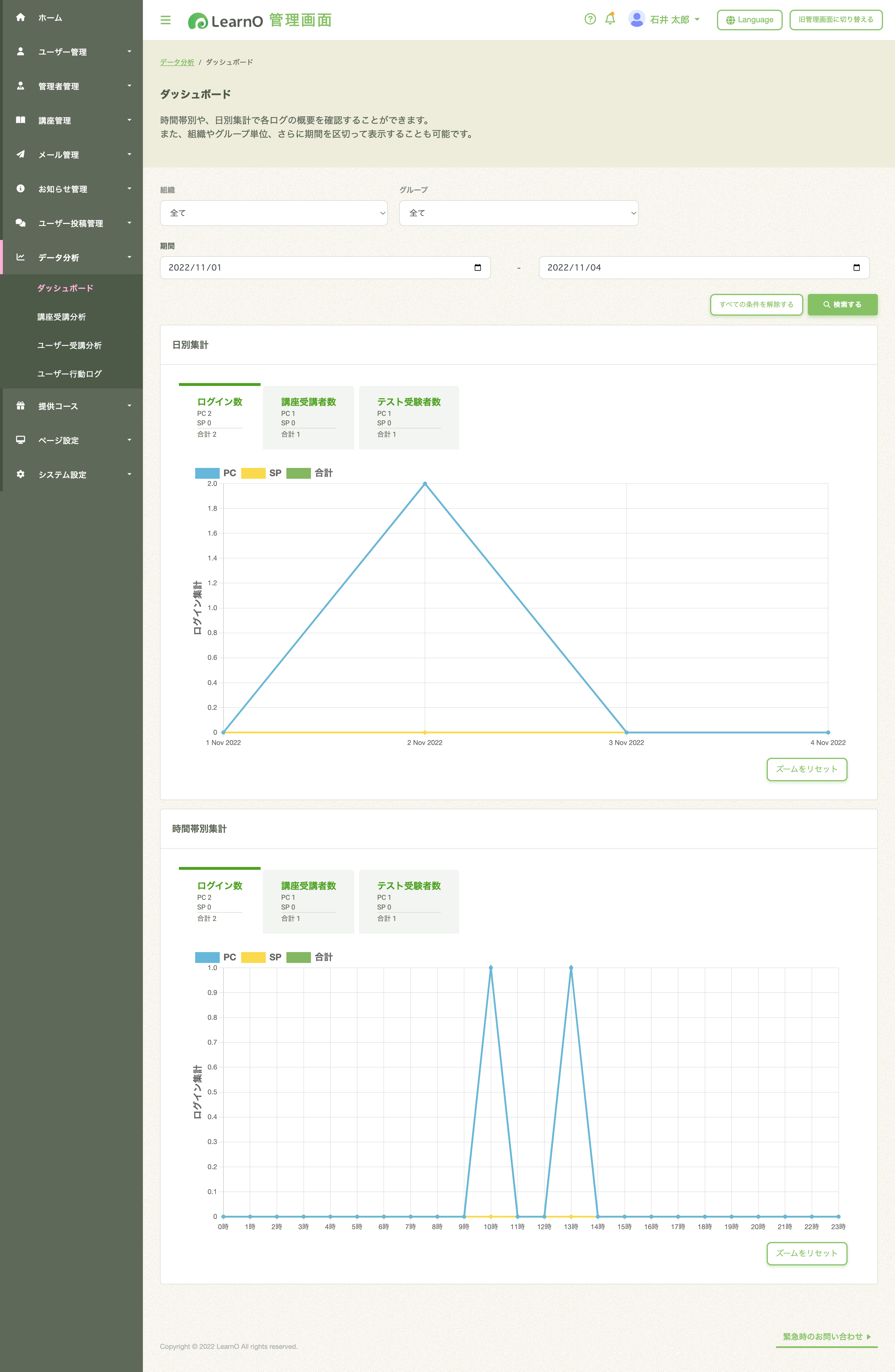 管理者が、受講者の受講履歴やテスト結果を細かく確認することが可能。未受講者へメールを配信して受講を促す機能も備えています。  ・動画の配信(格安プランには含まれません)  ・スライドの配信  ・受講者をグループ管理できる  ・受講者へのメール配信  ・CSVでの一括登録  ・CSVでのログデータ取得  ・選べるデザイン  ・貴社のロゴが設定できる  ・英語切り替えが可能  ・修了証を発行できる