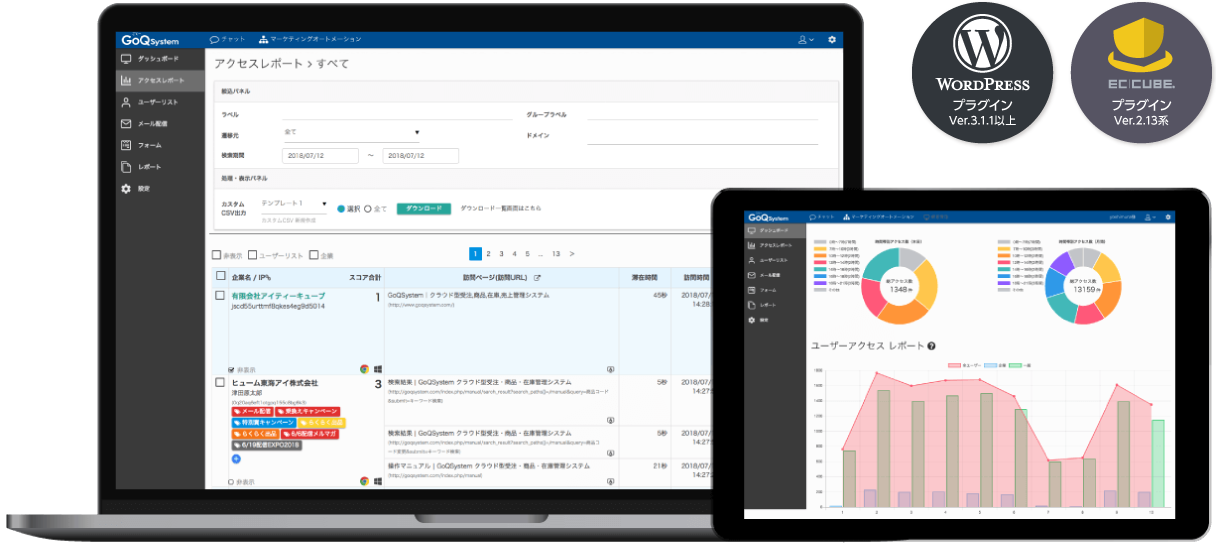 自社サイトの訪問者がいつ、どのページをどのくらいどうやって見たのかを「見える化」し、効率の良い営業活動と簡単にマーケティングが行える画期的なツールです。