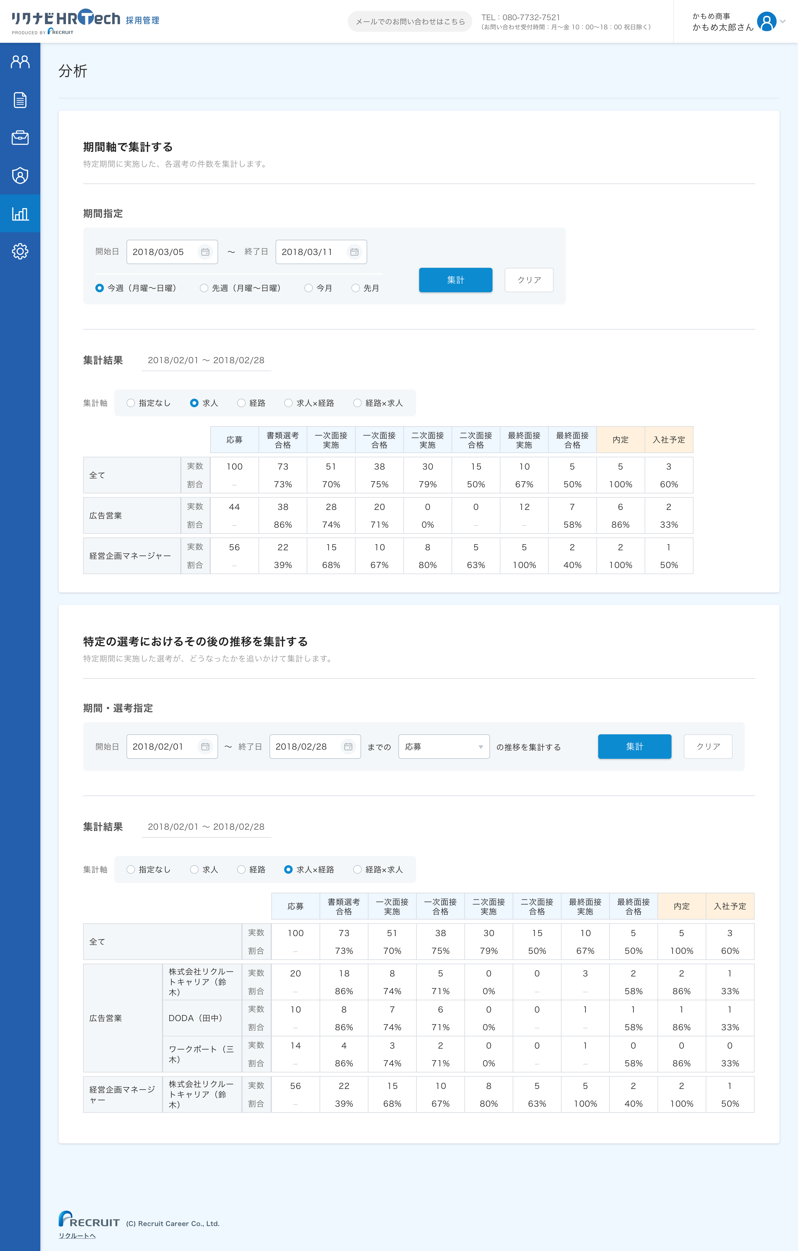 ・求人、エージェント別に選考結果を簡単に分析することができ、蓄積した情報を次の採用に活かすことが可能に