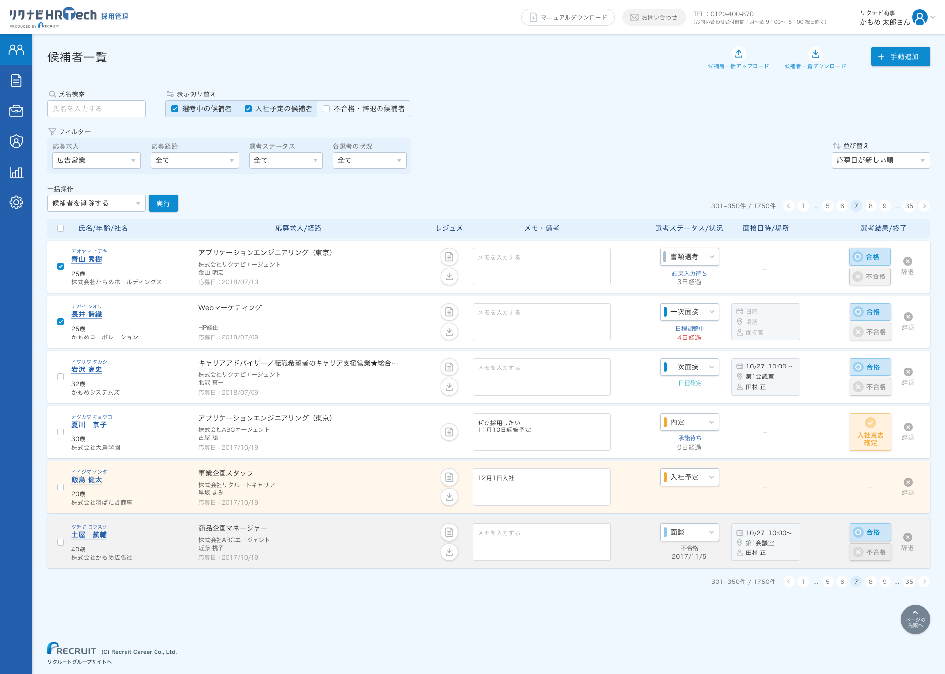 ・候補者をクラウド上で一括管理することで、Excelへの転記作業などの細かな業務工数が削減